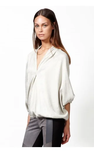 This beautiful silver-grey jacquard top is a must-have from Ramy Brook's collection! The shape of this top with it's dolman sleeve is flattering on every body type. Dress it up with some fab jewelry, black leather pants and you're ready for any party!