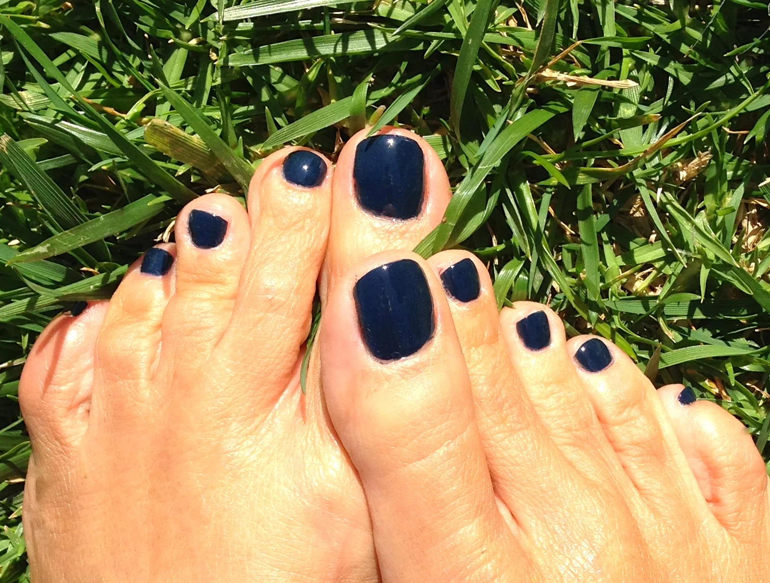 Since it's officially spring time, I thought I would show off my most recent fave pedicure with a great nail color from Nicole by OPI. It's the perfect shade of dark blue with grey undertones. This particular color acts as a neutral and looks good with everything.