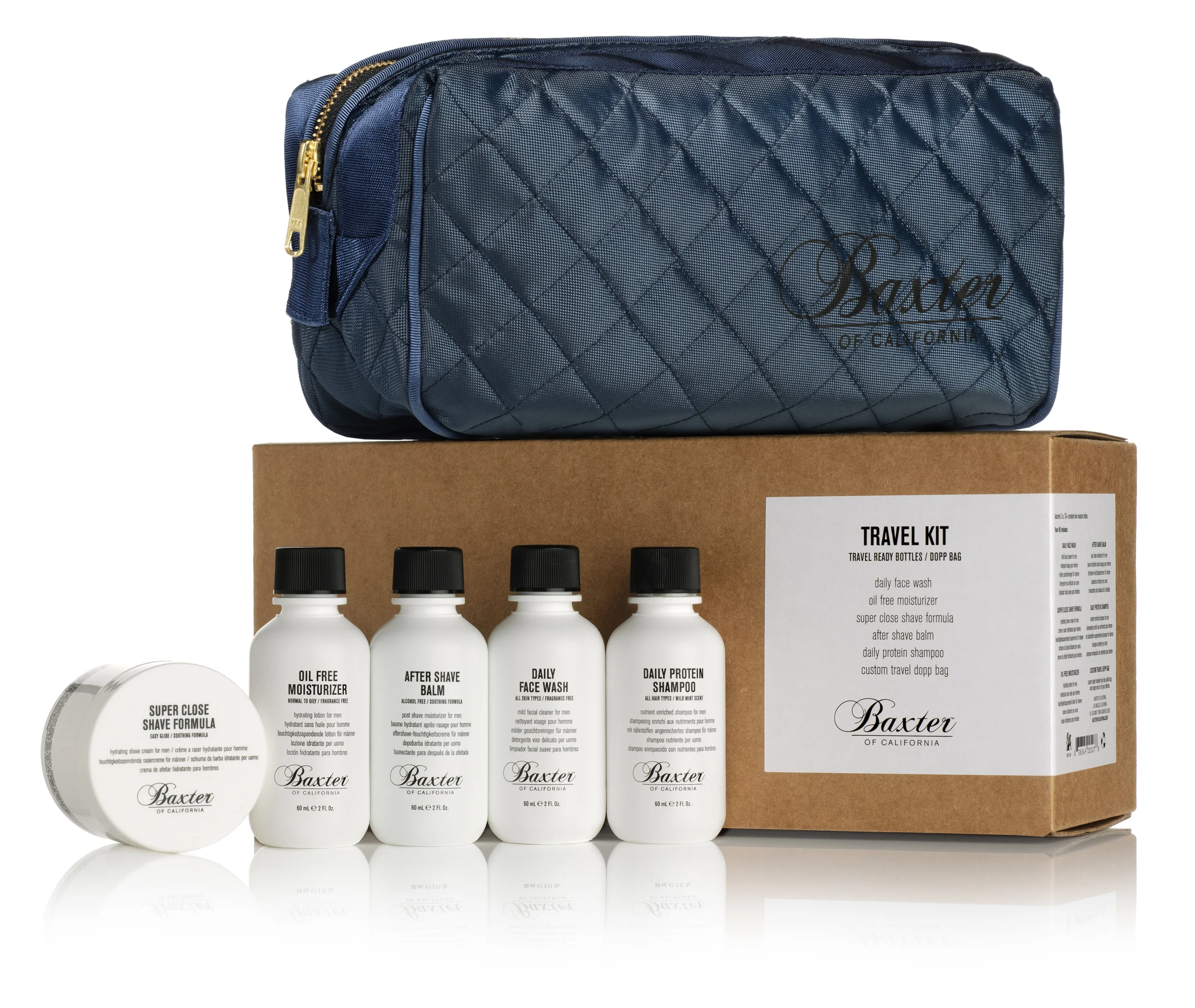 Men will not buy a travel kit for themselves but would appreciate having their favorite products with them when on a trip. Some of the best products available are from Baxter of California, an advanced men's grooming system that features high quality, simple to use products.
