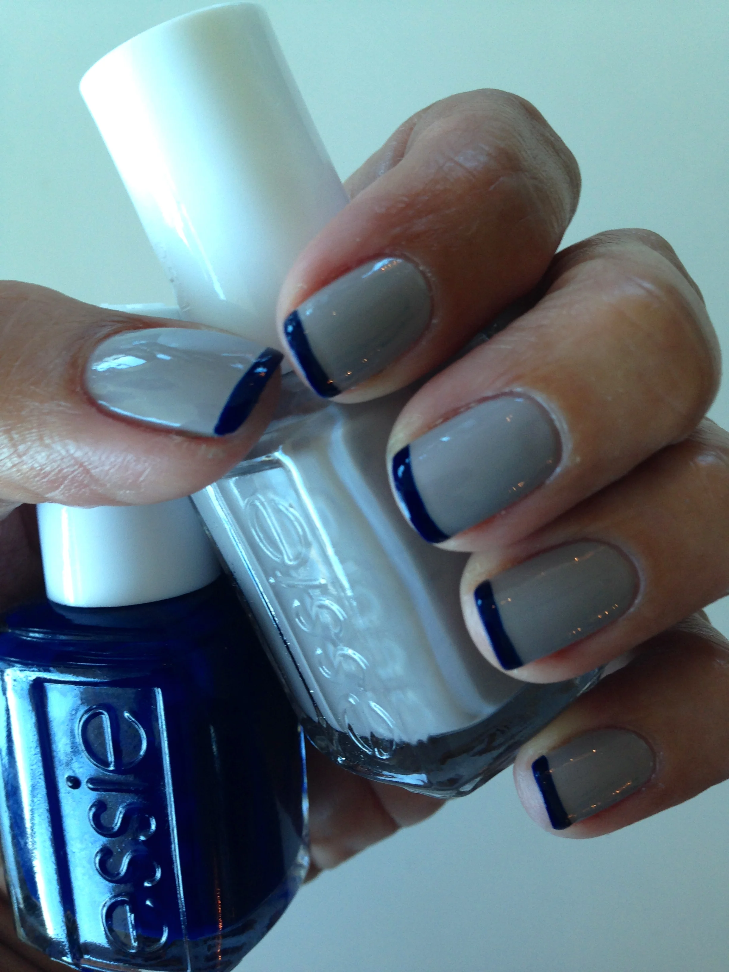 essie's "Take it Outside" is the most perfect taupey-grey nail color for this season. For a more edgy look, add a cobalt blue shade across the tip like "Style Cartel."