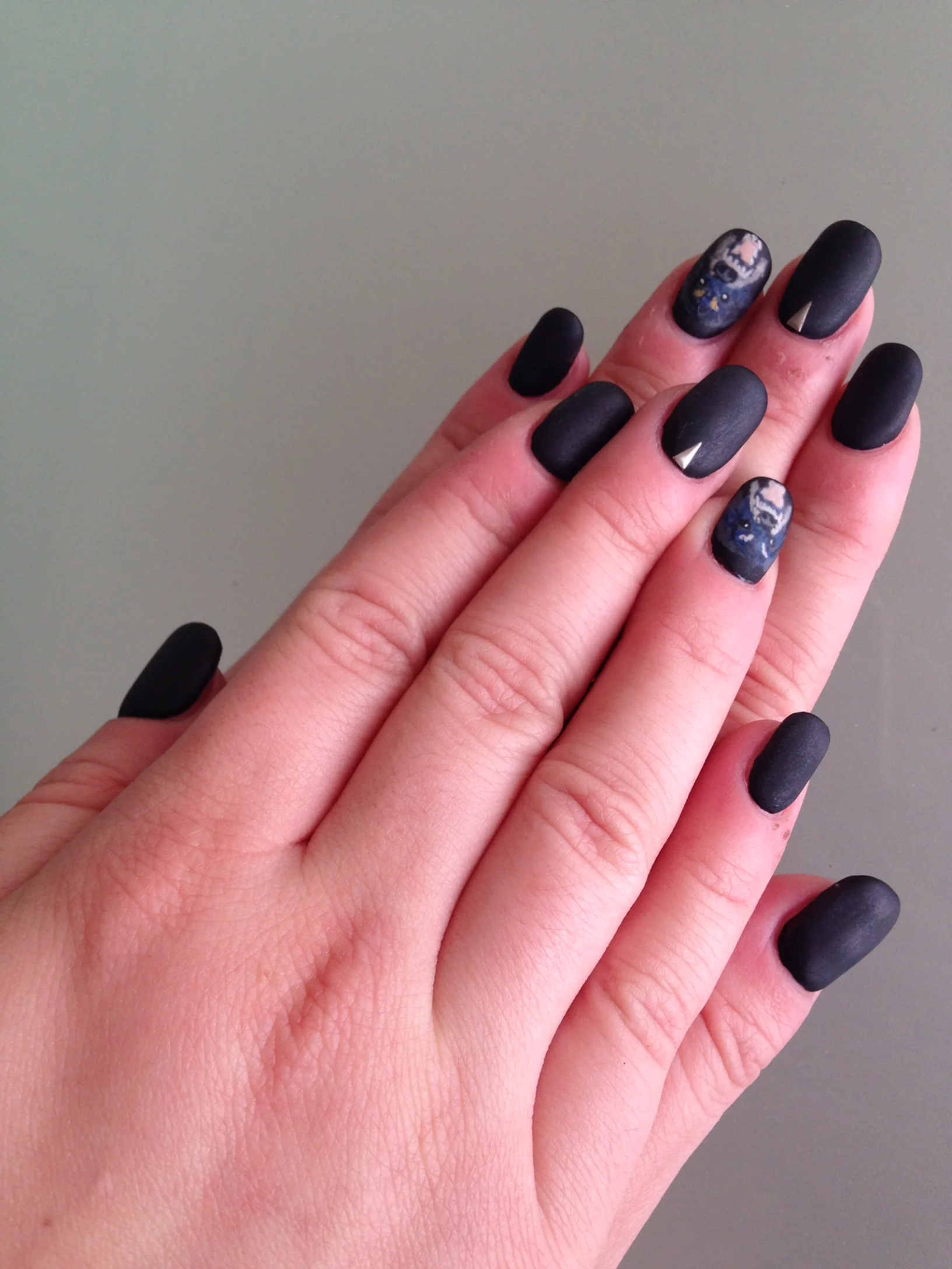 The matte black nail with a shiny black tip is a rocker take on a French mani.