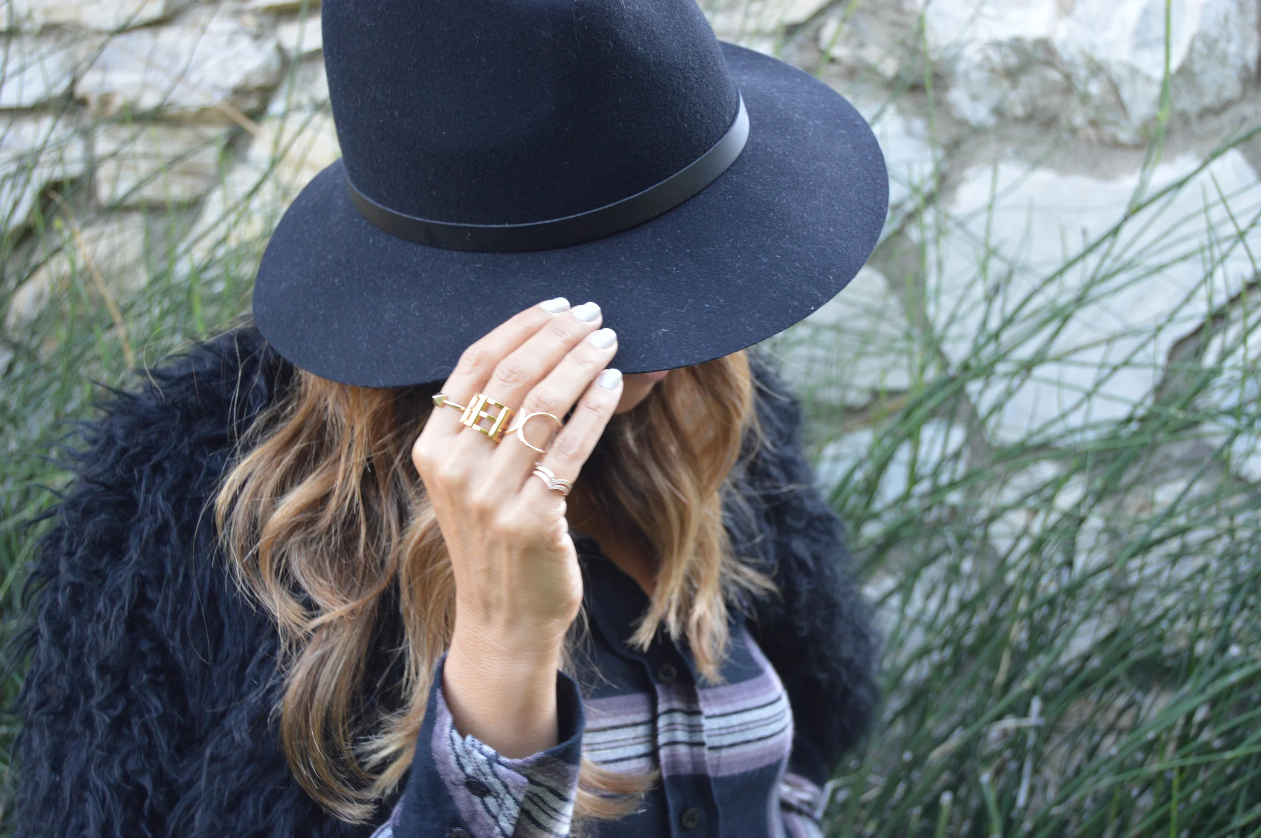 6. Zadig & Voltaire black faux fur jacket 7. Bella Dahl Flannel 8. Current/Elliot 'The Skinny Mini' leather skirt 9. Rag & Bone Wide Brim Fedora