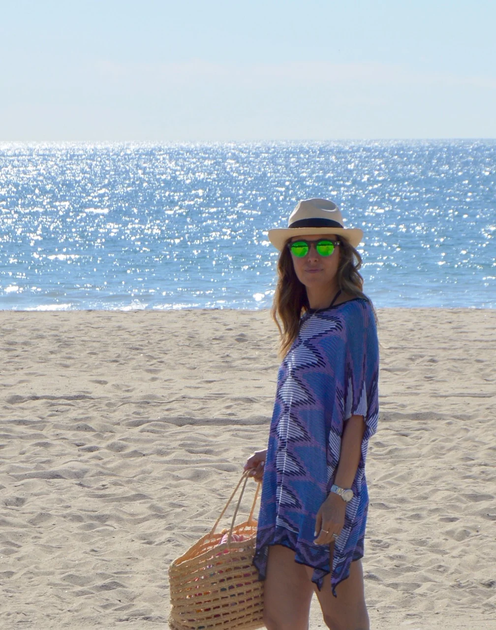 1. Tolani Printed Silk Tunic 2.Dolce Vida Nude Wedges 3. Straw Panama Hat from Sensi Studio 4. Missoni Poncho 5. Basta Surf Bikini 6. Medium Frayed Straw Tote by Sensi Studio 7. Illesteva Leonard Glasses 8. TKEES Lily Patent Leather Flip Flops
