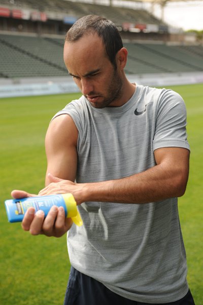 Neutrogena brand ambassador Landon Donovan wearing Neutrogena CoolDry Sport Sunscreen Lotion, SPF 30, $10.99