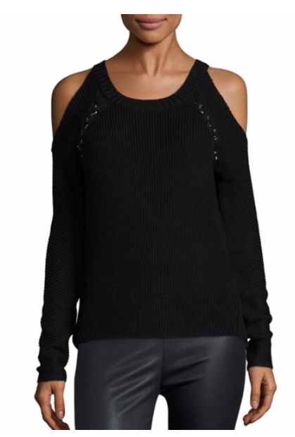 Below is a similar cold shoulder sweater by Ramy Brook. I've been loving this trend, especially for women who want to bare some skin but also like to cover their arms. Wear this sweater with leather pants in the winter or on a cooler summer night with jeans! The cut off shoulder is universally flattering on all body types.