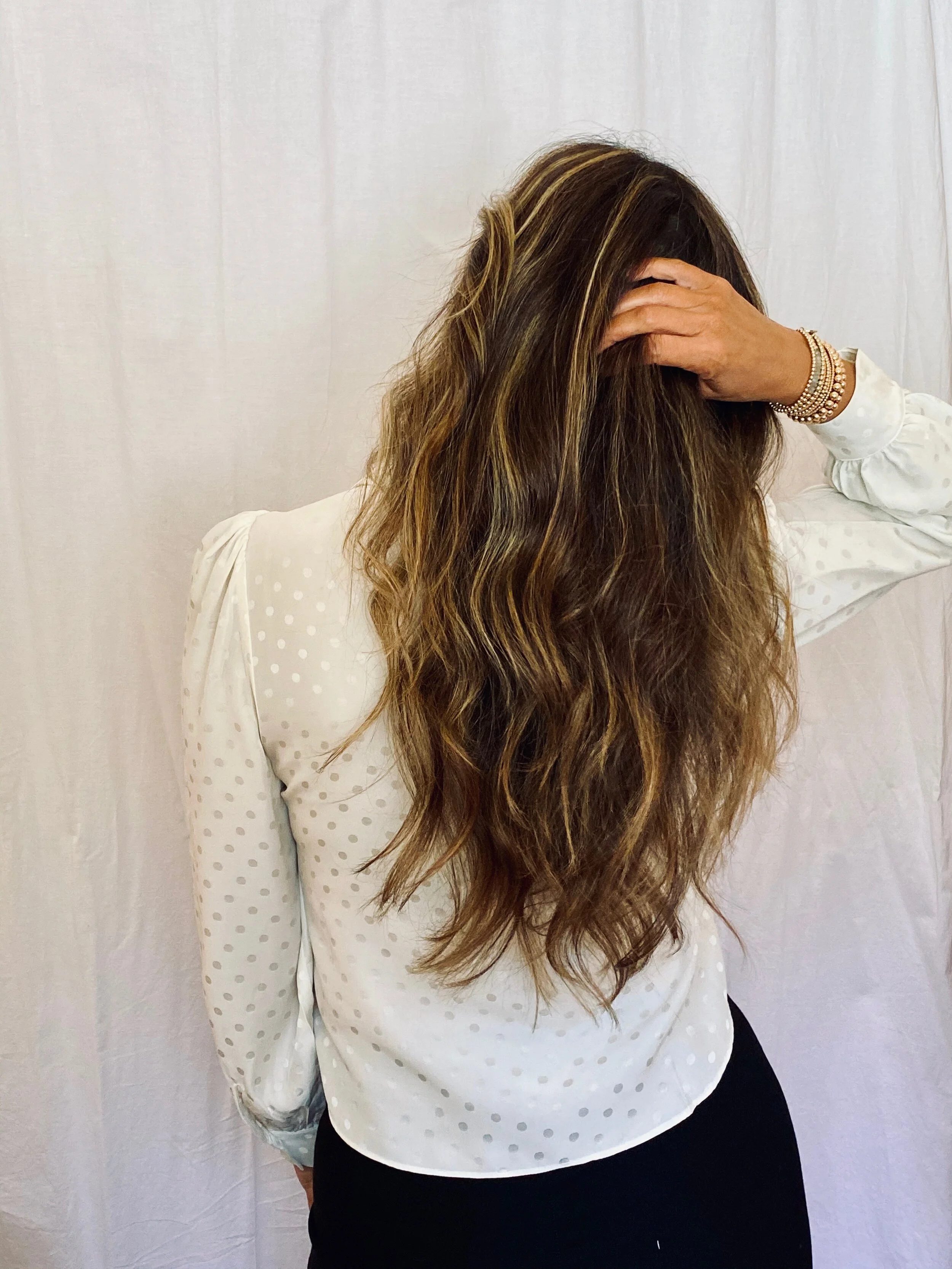 I usually wash my hair 2-3 times a week using the Better Not Younger Wake Up Call Volumizing Shampoo and Conditioner. I also like to use the Hair Redemption Restorative Butter Masque once a week for deeper conditioning. Some other favorites from the line are their No Remorse Heat Protection & Taming Spray and the Superpower Fortifying Hair & Scalp Serum.