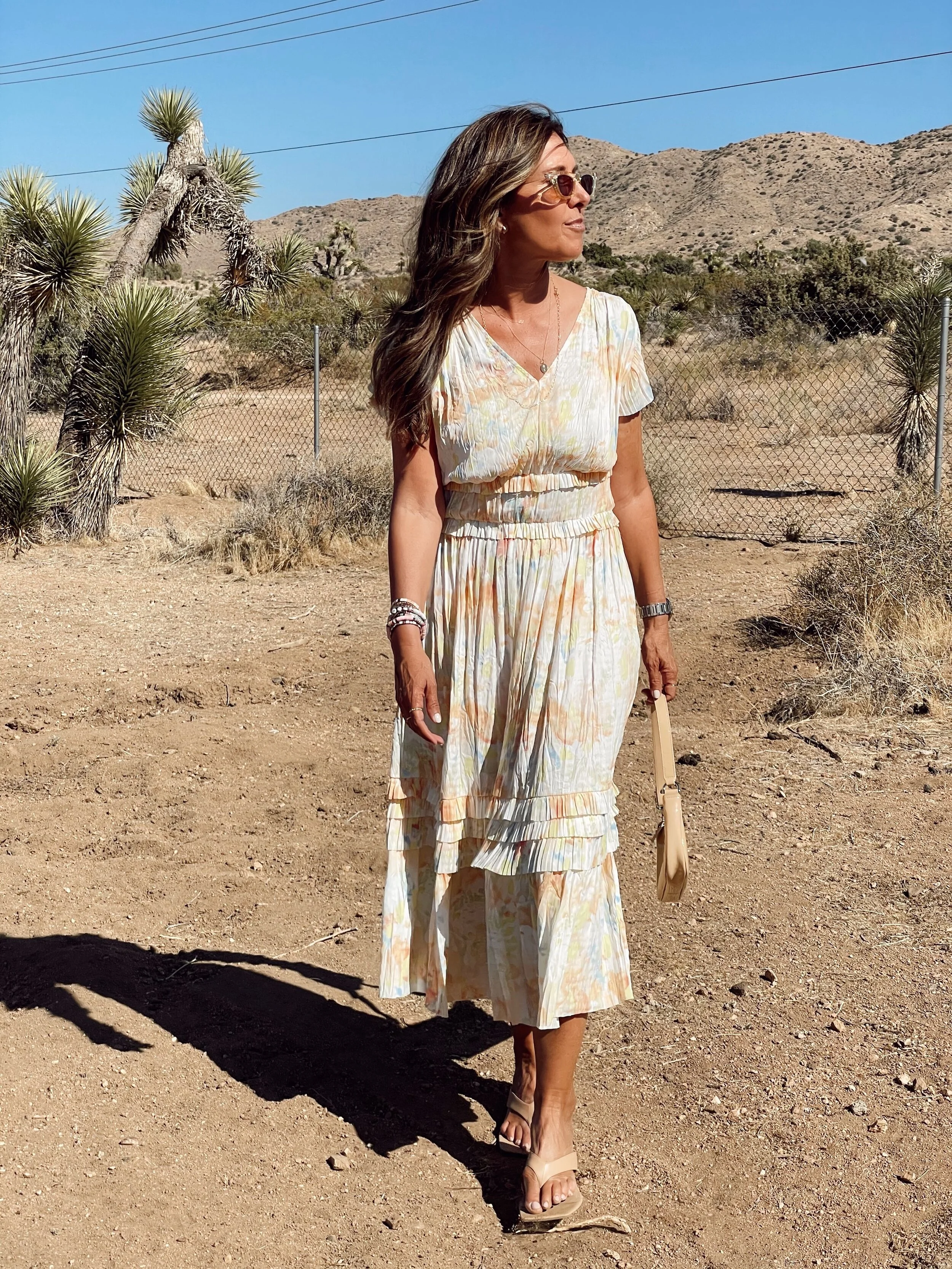 Since I am only 5’4, the midi dress length elongates my look and is super flattering. They are my go-to for a chic summer look.
