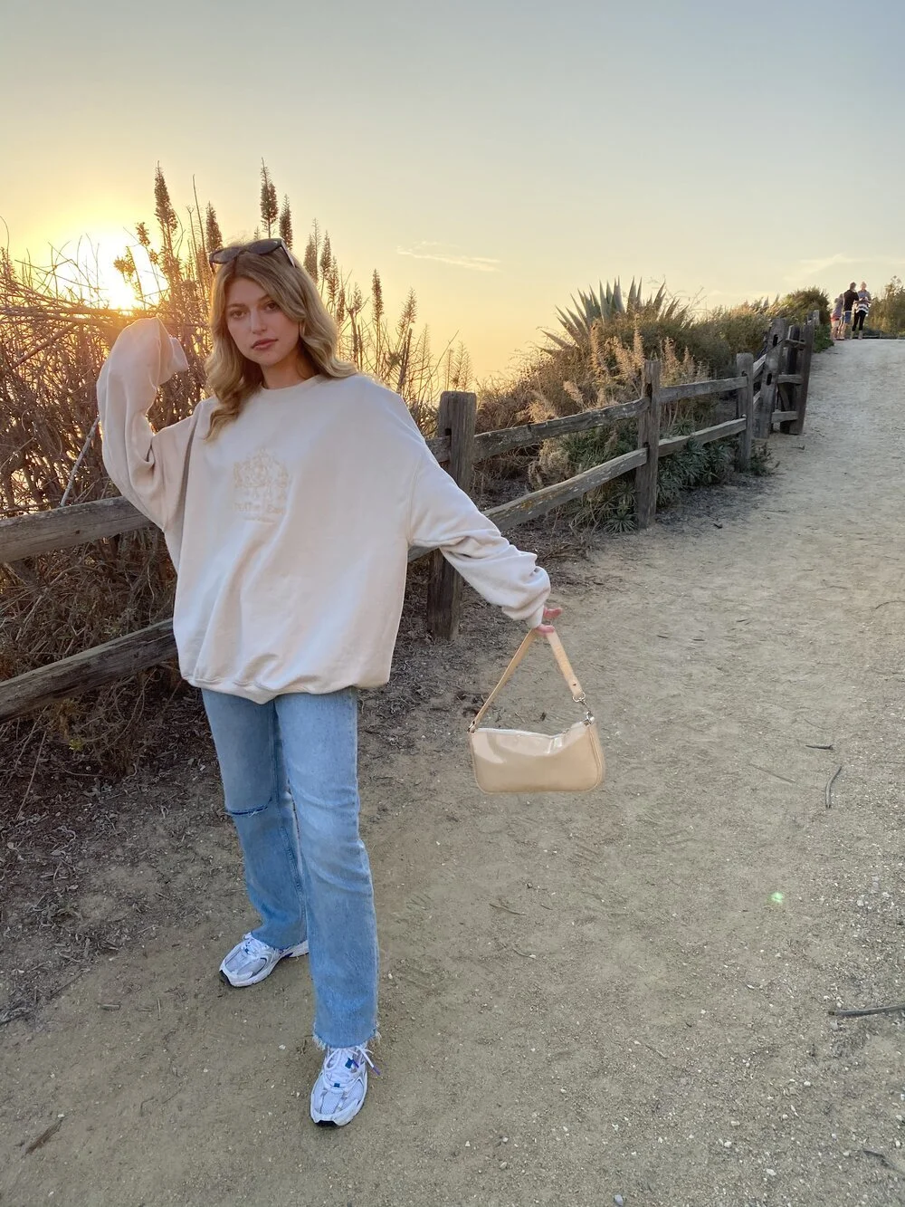 Shop Melissa’s sweatshirt by Palo Santo, jeans by Boyish, sneakers by New Balance