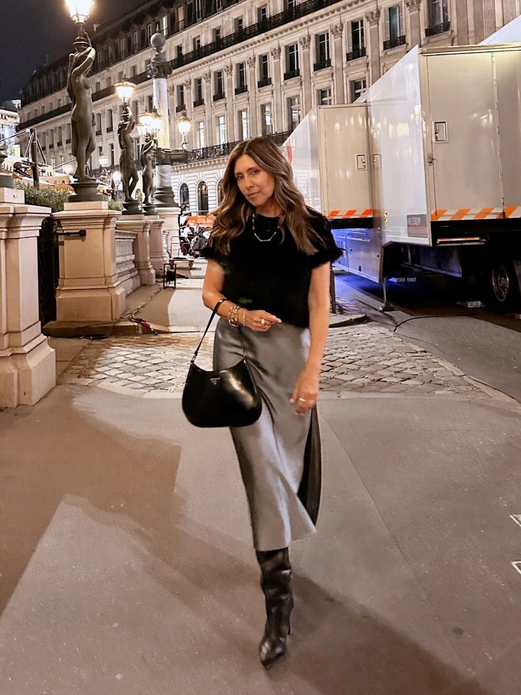 A white silk blouse with beautiful detailing makes all the difference and is a must-have in any wardrobe! I also purchased this one in Paris and it’s available in the US. Pair it with your fave black trousers, or classic mini or maxi skirt and you are good to go. This old money look easily transitions from day to night. Add a pop of color with accessories, chunky jewelry, and glam makeup for more festive occasions.