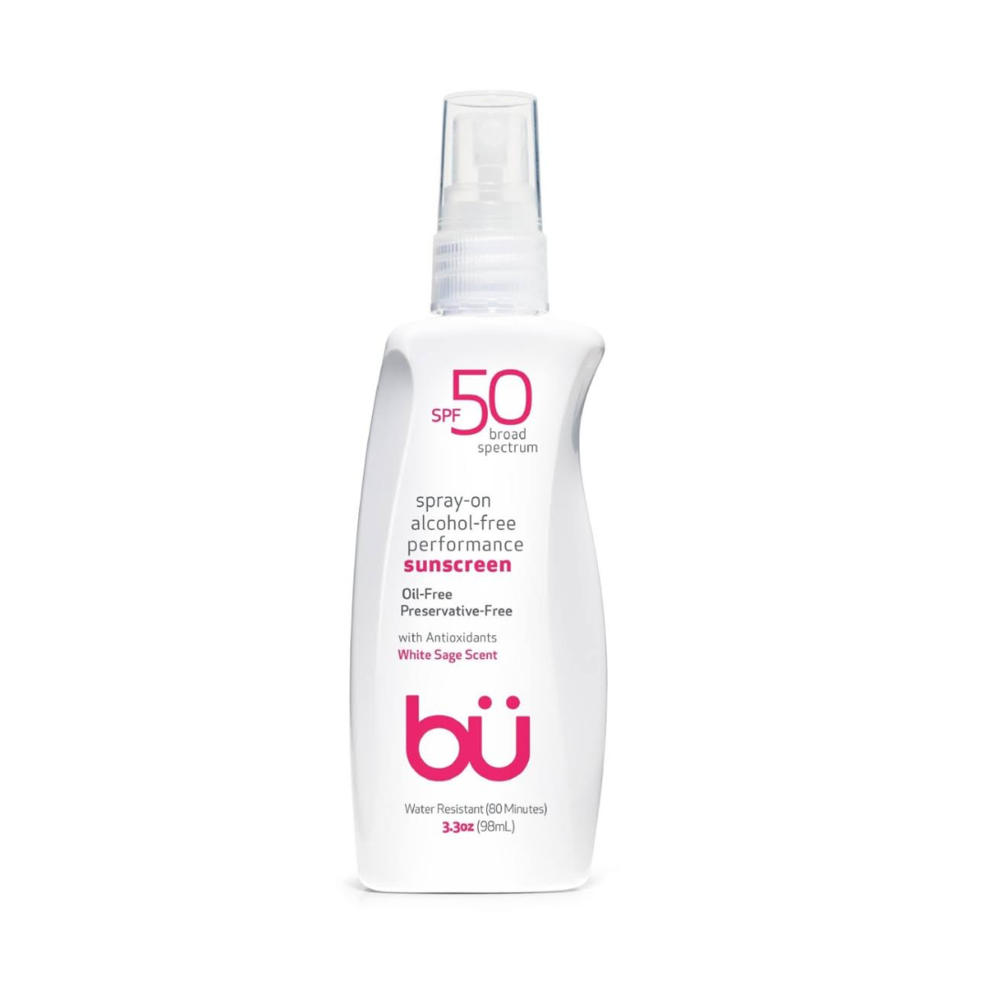 Not only is Bu sustainable and reliable, but it's also water and sweat resistant for up to 80 minutes. It’s hypoallergenic, non-comedogenic, cruelty-free, vegan and perfect for sensitive skin. The subtle mist goes on like a super lightweight oil that immediately absorbs into the skin leaving it smooth and soft. It never feels cold or leaves a sticky residue. I wear it from head to toe and always keep a bottle on hand. They make great travel sizes too and offer SPF 30 and 50.