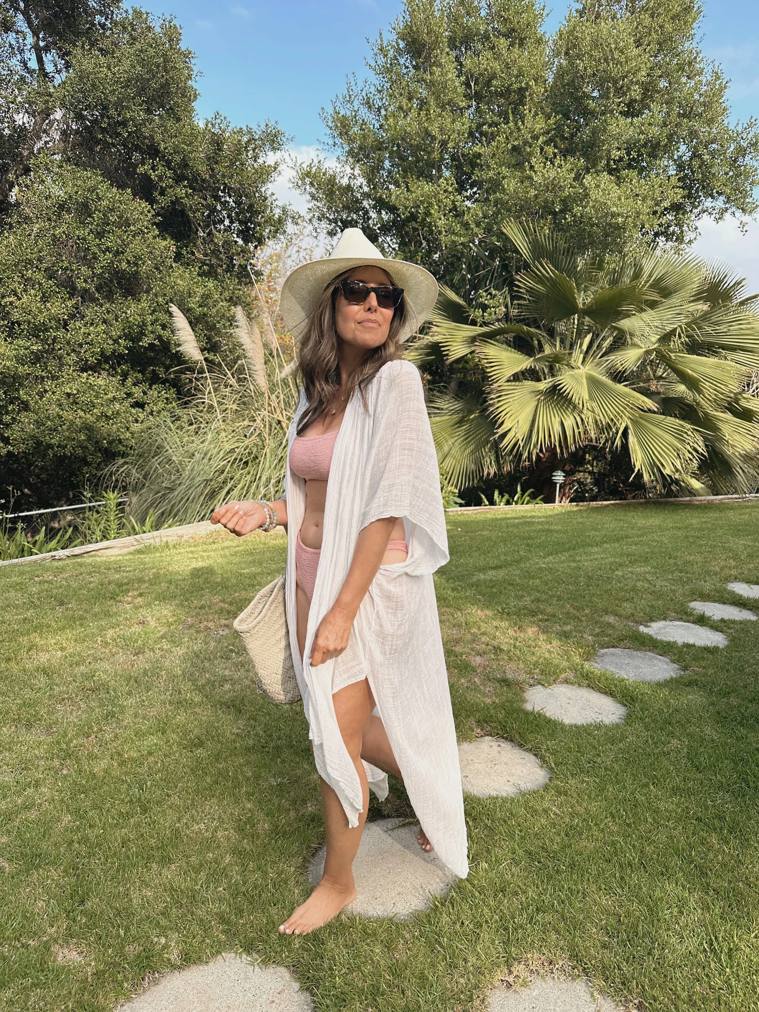 Hunza G Bikini Set, Old Free People Coverup, Janessa Leone Hat, Dragon Diffusion Tote
