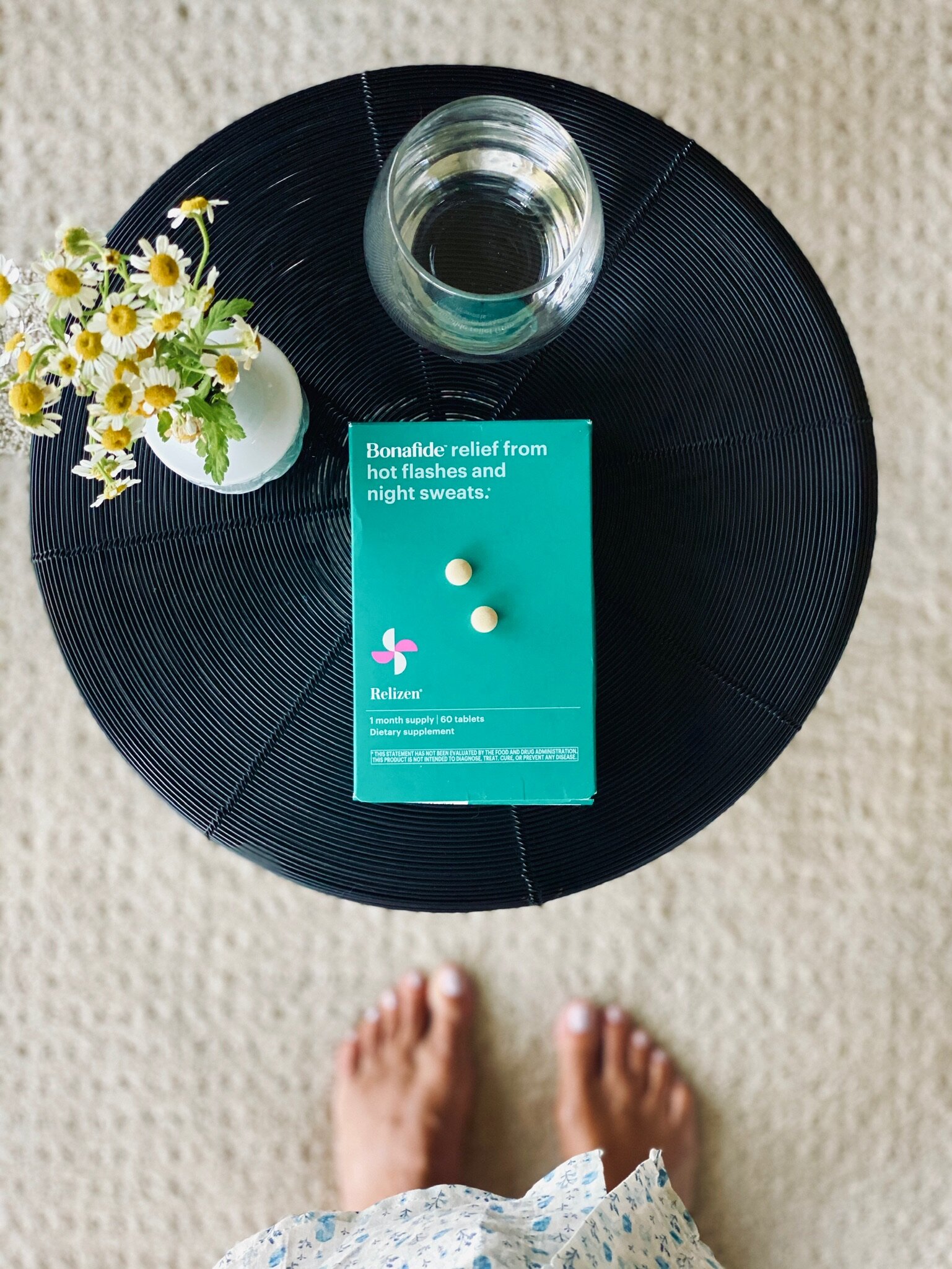 When I approached my late 40’s and early 50’s, I noticed a bevy of hormonal changes that were not only challenging for me but also for so many of my female friends in this age group. Two of the most common problems were with hot flashes, that would come on suddenly out of nowhere during the day (so embarrassing when that sweaty lip appeared) and, yes, the dreaded night sweats! I was one of those girls that was always freezing my tush off no matter how high the thermostat… but not anymore. Whoever said women don’t get hotter as they age was wrong! I sure did! Literally. Until I found these Relizen hormone-free supplements by Bonafide…